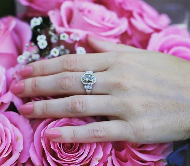 This Drop of Love has an authentic Zultanite®, a super rare gemstone from Turkey that changes color, surrounded by stylish gypsy set diamonds.